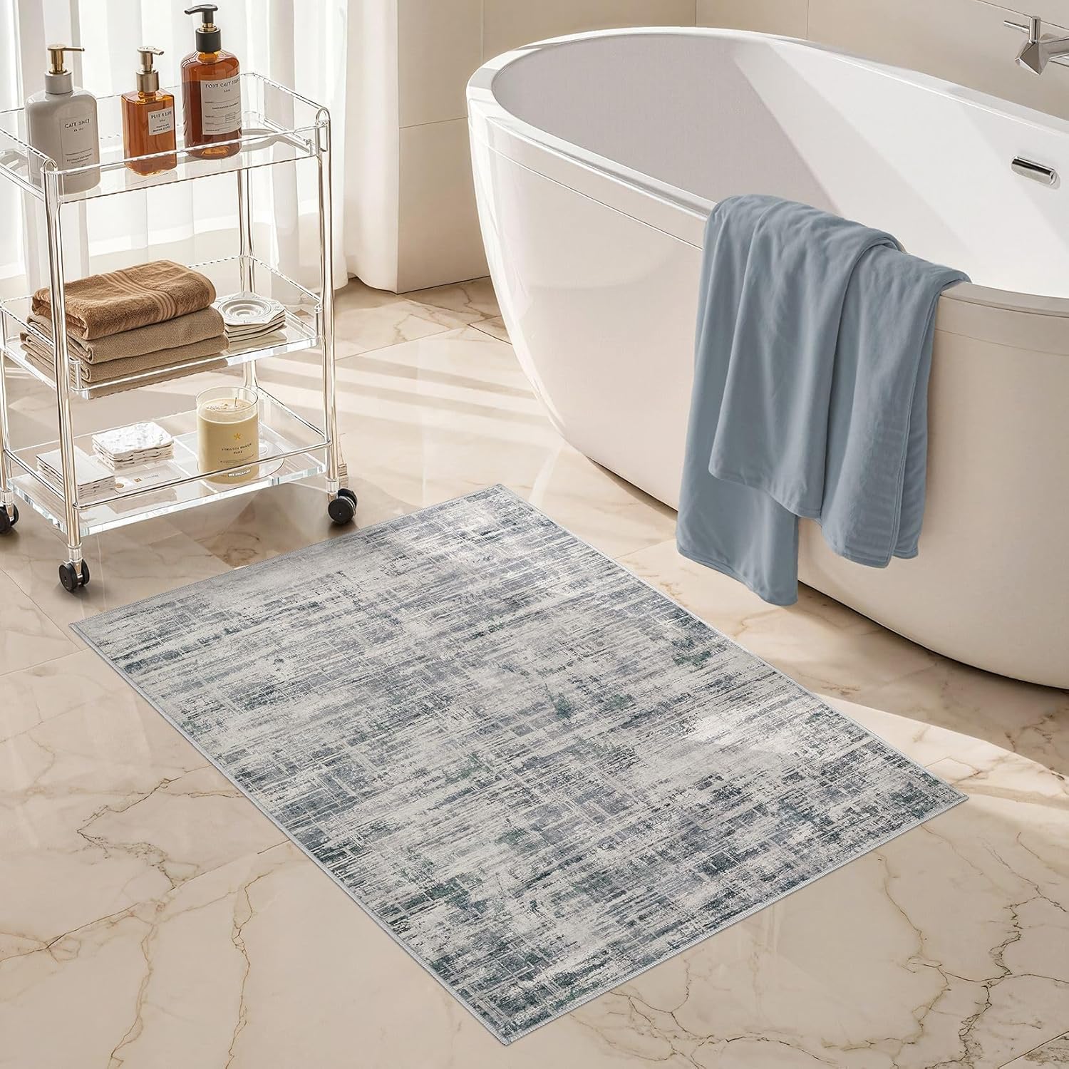 2x3 Entryway Area Rugs: Washable Neutral Abstract Small Rug Door Mat Non-Slip Soft Low Pile Indoor Carpe for Entrance Kitchen Front Door Bathroom Entry Kids Room - Gray