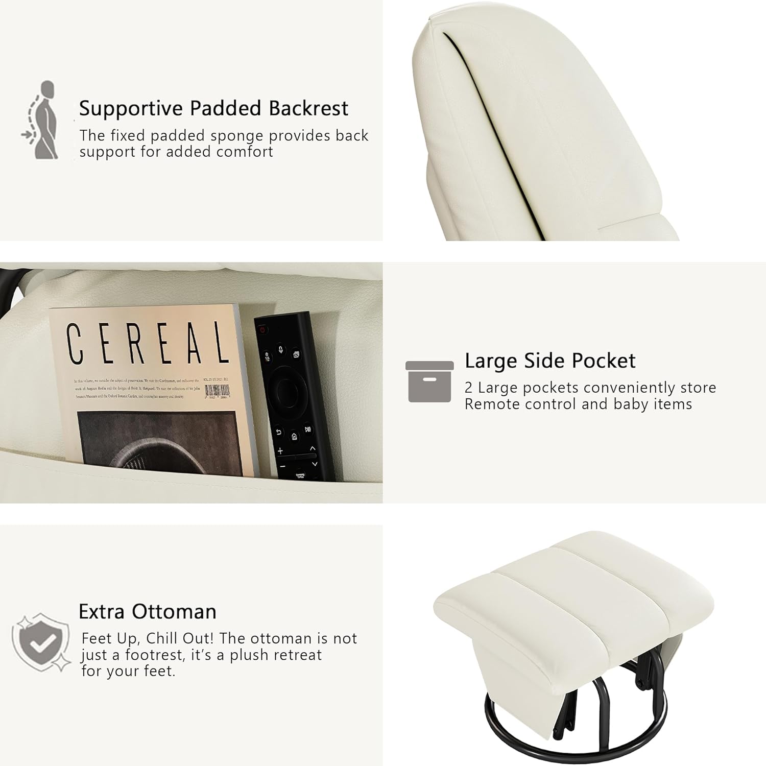 - [Ottoman Included] The AODAILIHB recliner chair comes with a multifunctional and stylish ottoman that can also be used as a comforting footrest