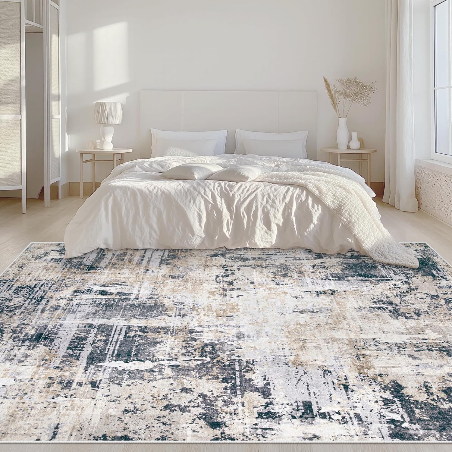 - Modern Abstract Rug: Simple color with soft stripe design, our living room rug has a modern look with a distressed feel; And 5x7 rug perfect for living room, bedroom, dining room, kitchen, children's room, office, laundry room, dorm.