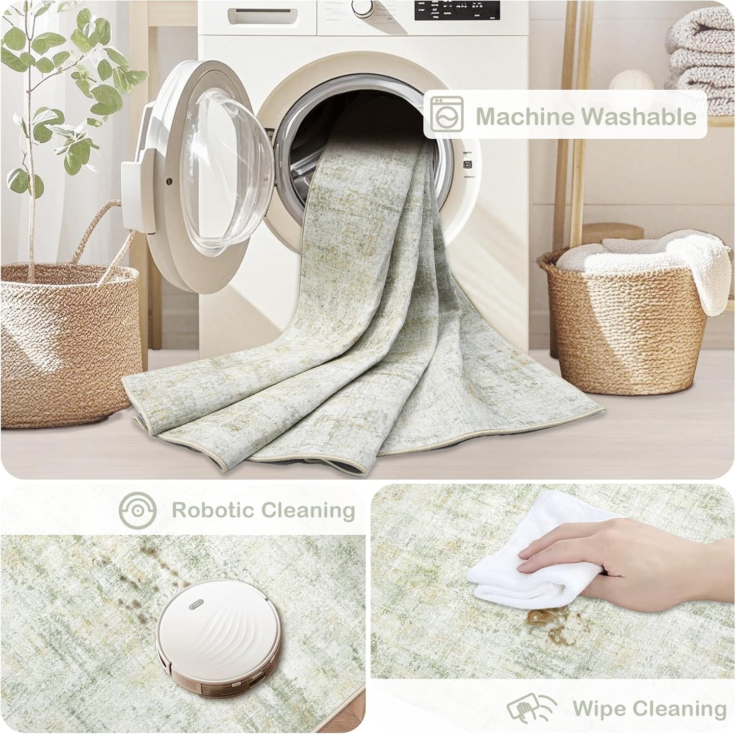 Area Rugs 6x9 Living Room: Washable Rug Modern Abstract Large Rugs Soft Non Slip Neutral Rug Stain Resistant Indoor Carpet for Bedroom Kitchen Dining Room Nursery Home Office Rugs(Green Brown,6'x9')