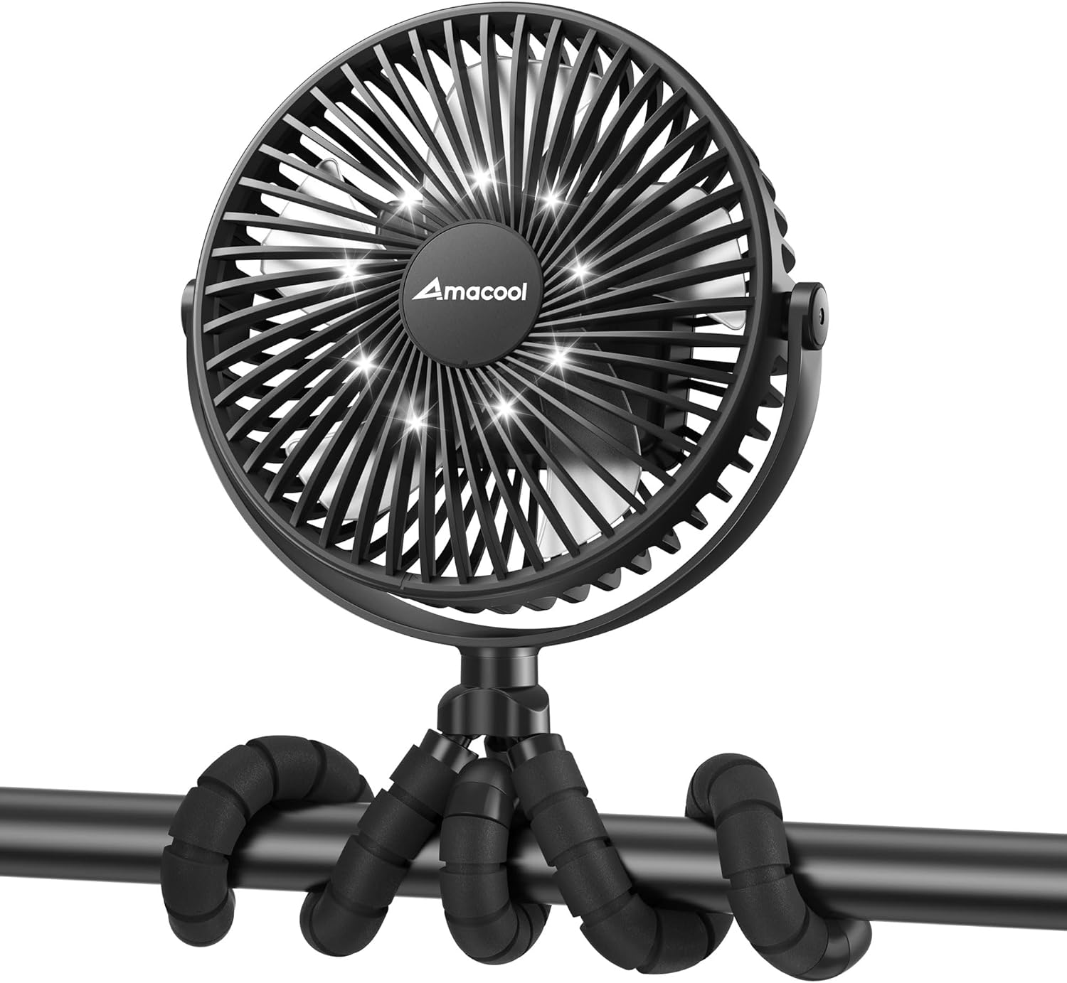 AMACOOL Baby Stroller Fan, 10000mAh Rechargeable, 50H Ultra-long Runtime, 3-Speed Portable Clip on Fan with LED Light, Timer, 360°Rotate Battery Operated Fans for Travel Car Seat Crib