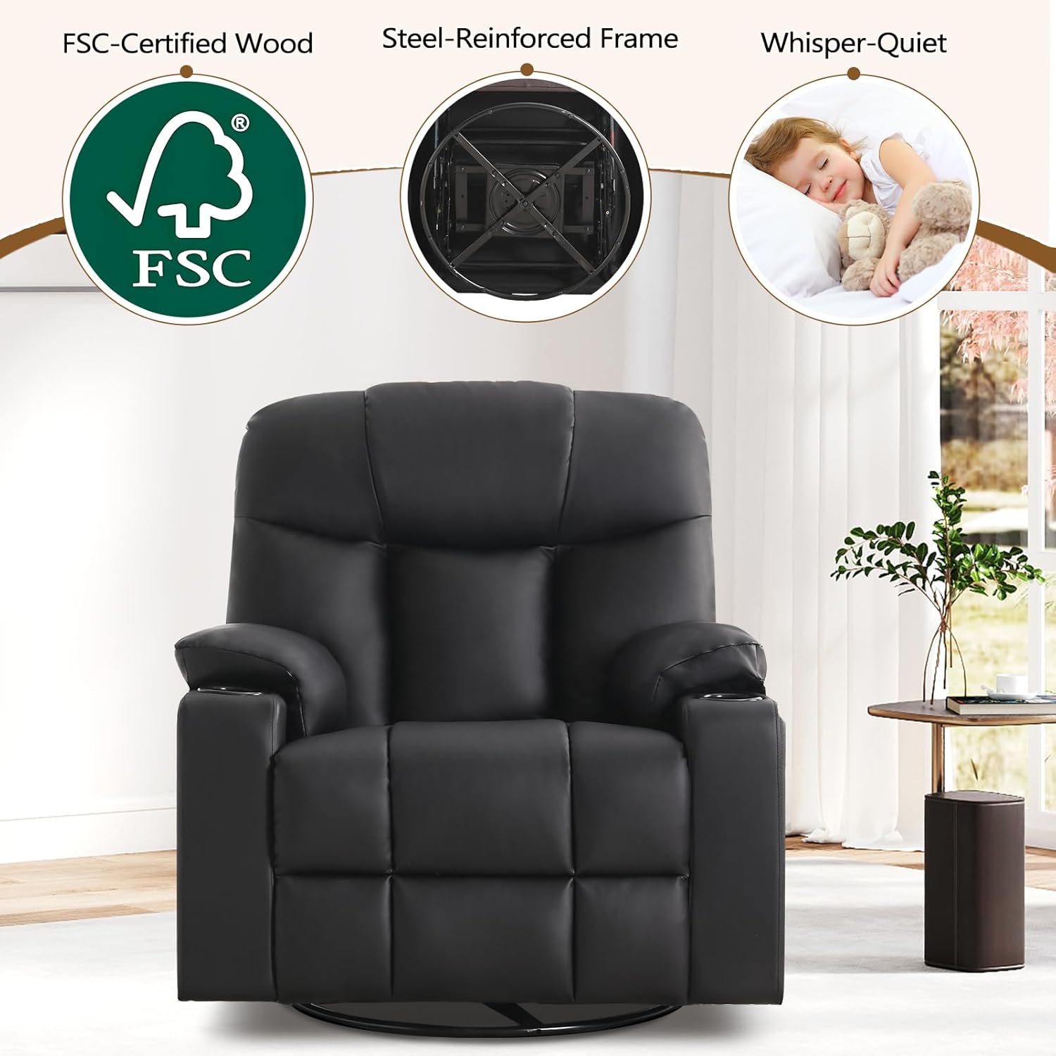 - FSC-Certified:The frame of the recliner chair is made of FSC-certified wood