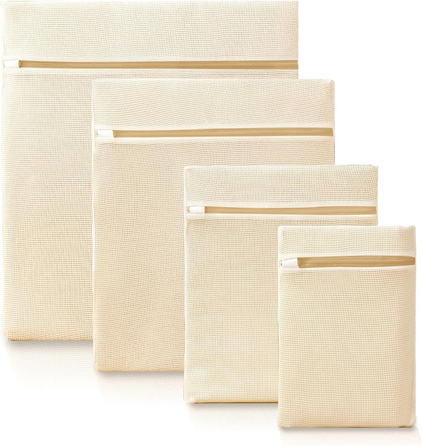 4Pcs Cotton Mesh Laundry Bags for Delicates,Breathable Mesh Garment Bag for Washing Machine, Travel Wash Bags with Zipper for Bras, Underwear, Socks, Clothes, Laundry Dorm Room Essentials(S-XL)