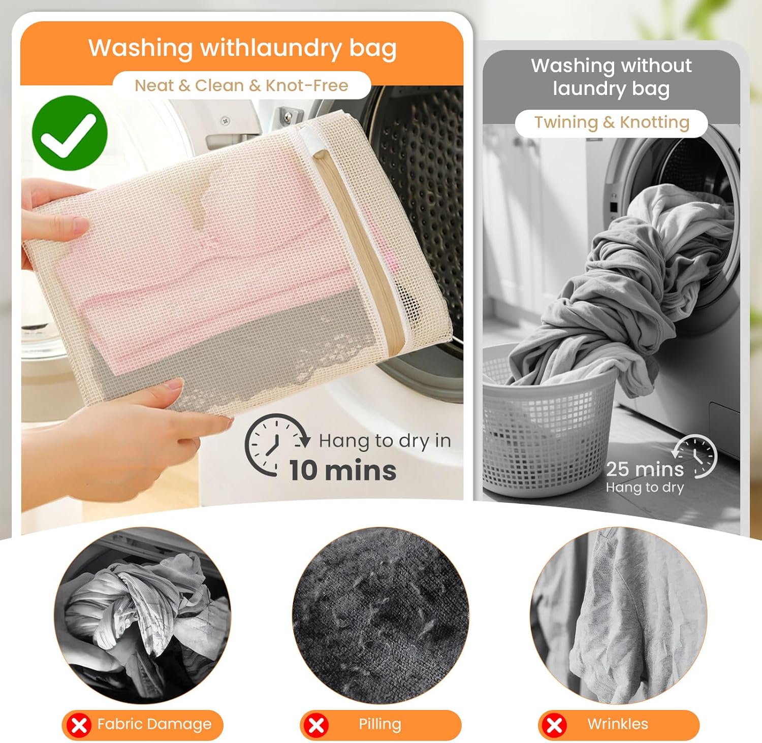 - Brethable Cotton Mesh Laundry Bags for Gentle Care:Our breathable cotton mesh bag protects fabrics while allowing optimal water flow,reducing pilling by 80% versus synthetic bags.Made with gentle,skin-friendly fabric,safe for babies and sensitive skin.Soft yet durable,the cotton becomes more supple with each wash while maintaining strength