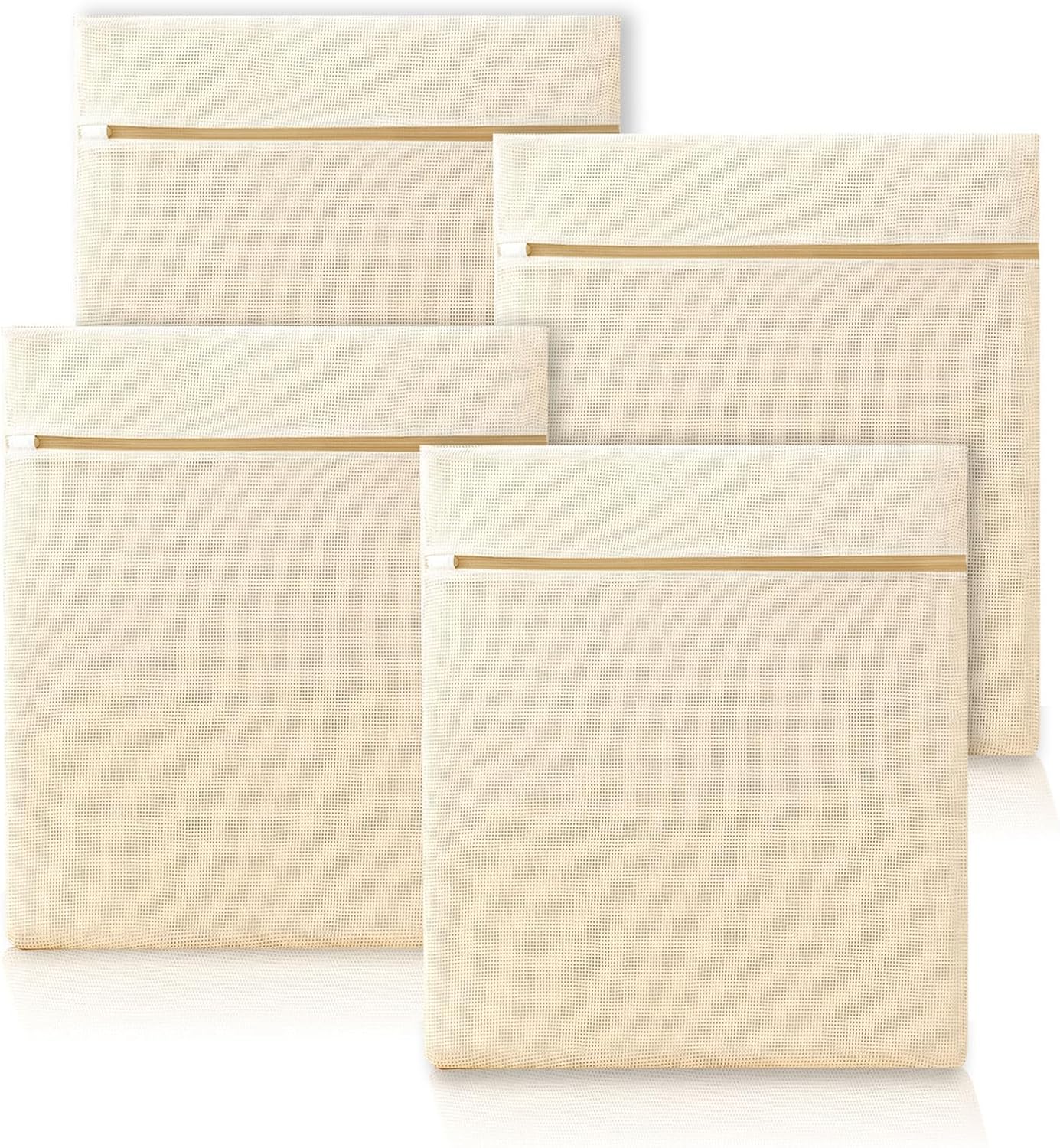4Pcs Large Cotton Mesh Laundry Bags for Delicates,Breathable Mesh Garment Bag for Washing Machine,Travel Wash Bags with Zipper for Bras,Underwear,Socks,Clothes,Laundry Dorm Room Essentials(XL)