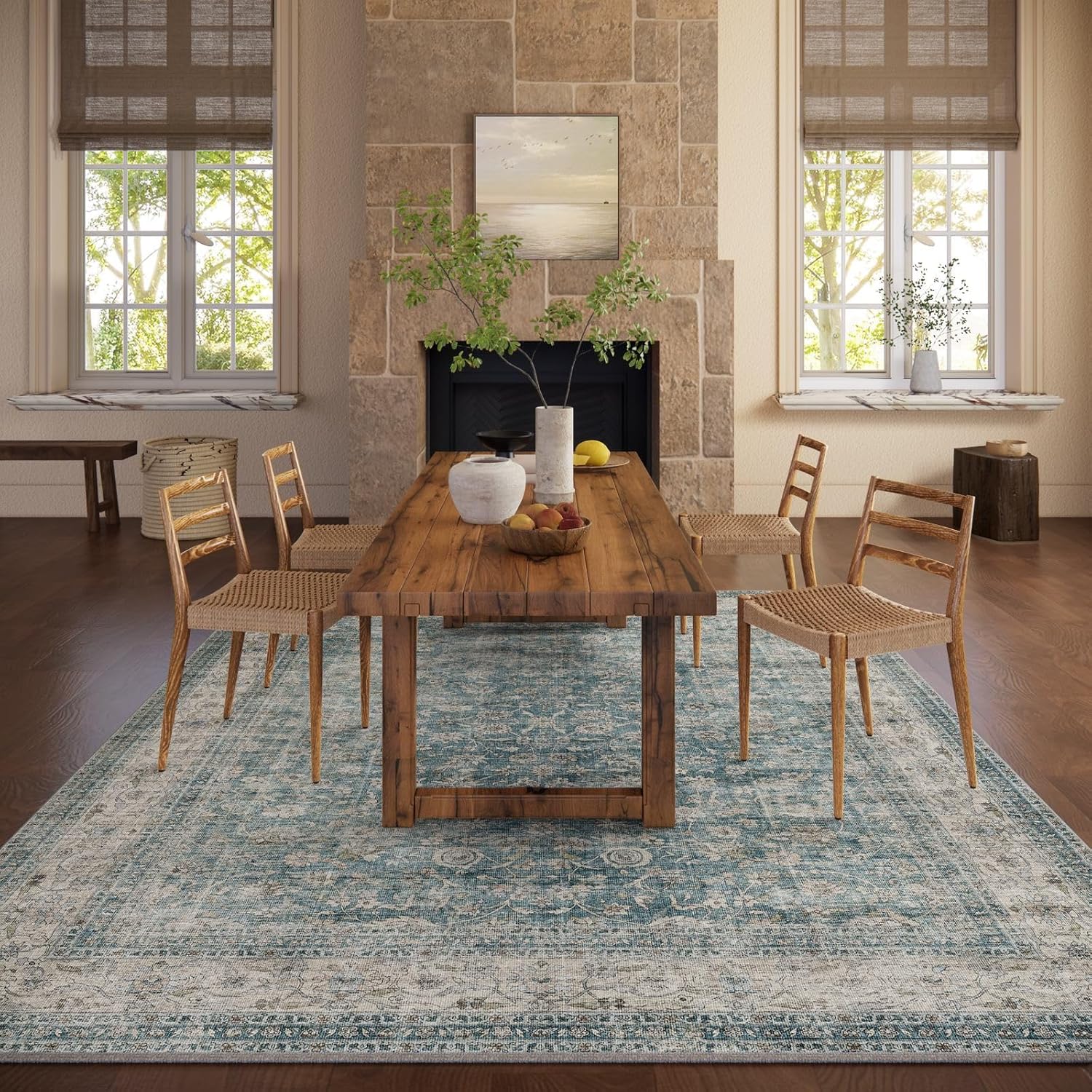 Area Rugs 9x12 Living Room: Washable Rugs for Bedroom Vintage Stain Resistant Non Slip Low Pile Large Boho Carpet for Kitchen Dining Room Farmhouse Kids Room Nursery