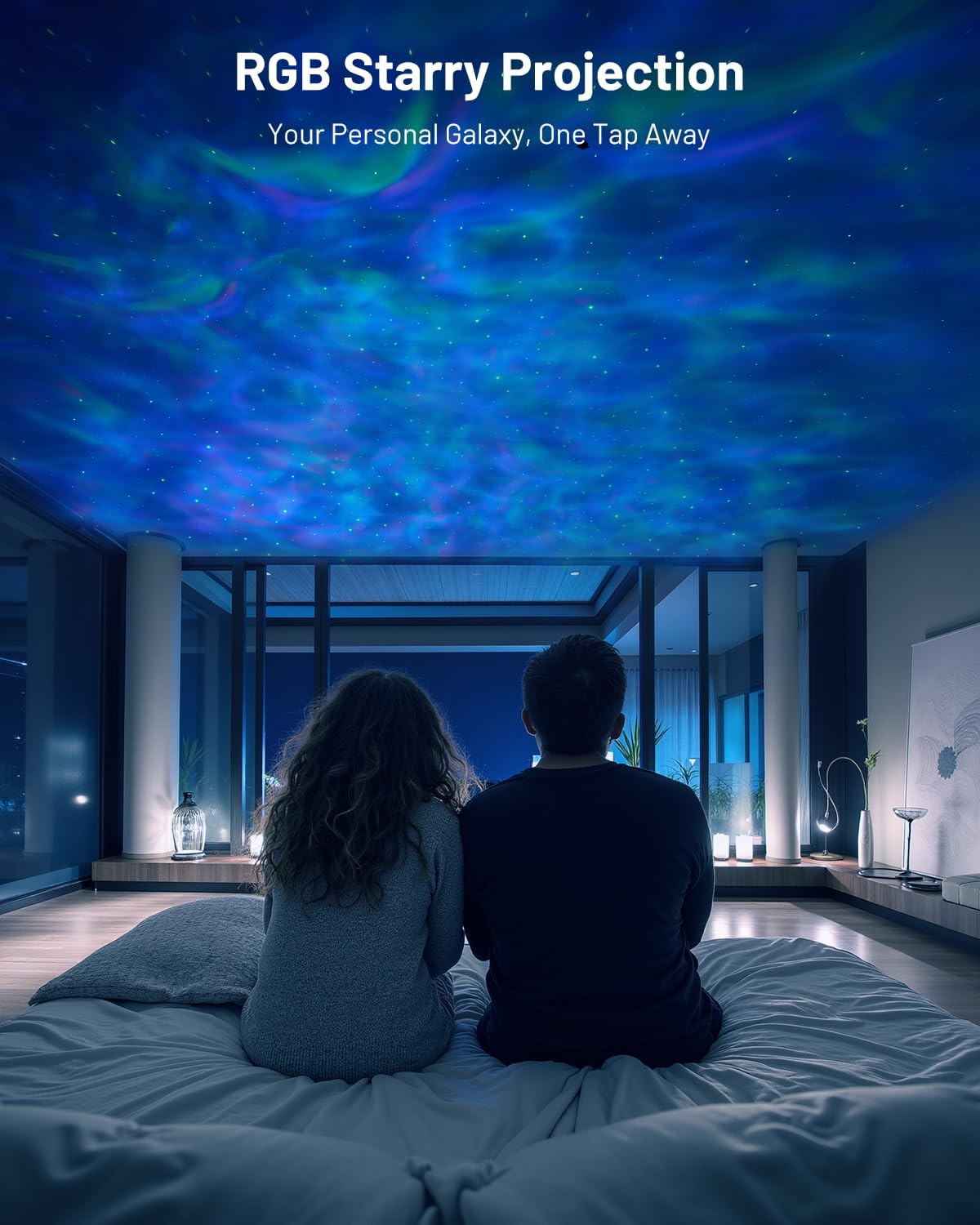 - 2-in-1 Torchiere Floor Lamp: The Dinoho standing lamp innovatively combines a lower led floor lamp with an upper RGB star light projector, offering a captivating lighting experience. It provides ambient illumination while bringing the beauty of a flowing galaxy right to your room without leaving home—lighting up your nights with a touch of romance.