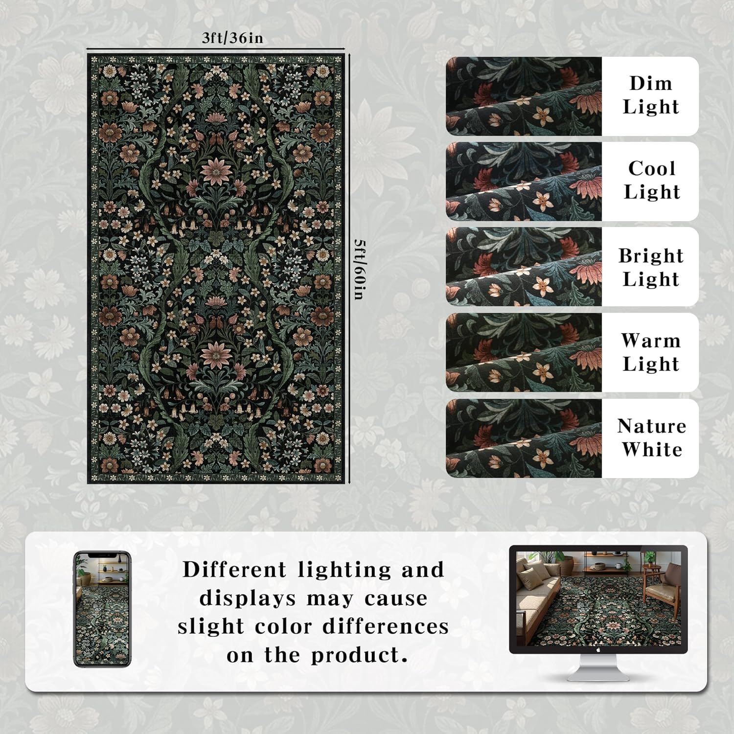- Botanical Floral Rug: Intricate garden motifs of this 3x5 low pile area rug create natural elegance that harmonizes with both classic and modern interiors. It's ideal for living room, bedrooms, dining room, kids' playrooms or home office, injecting vibrancy and freshness into your space.