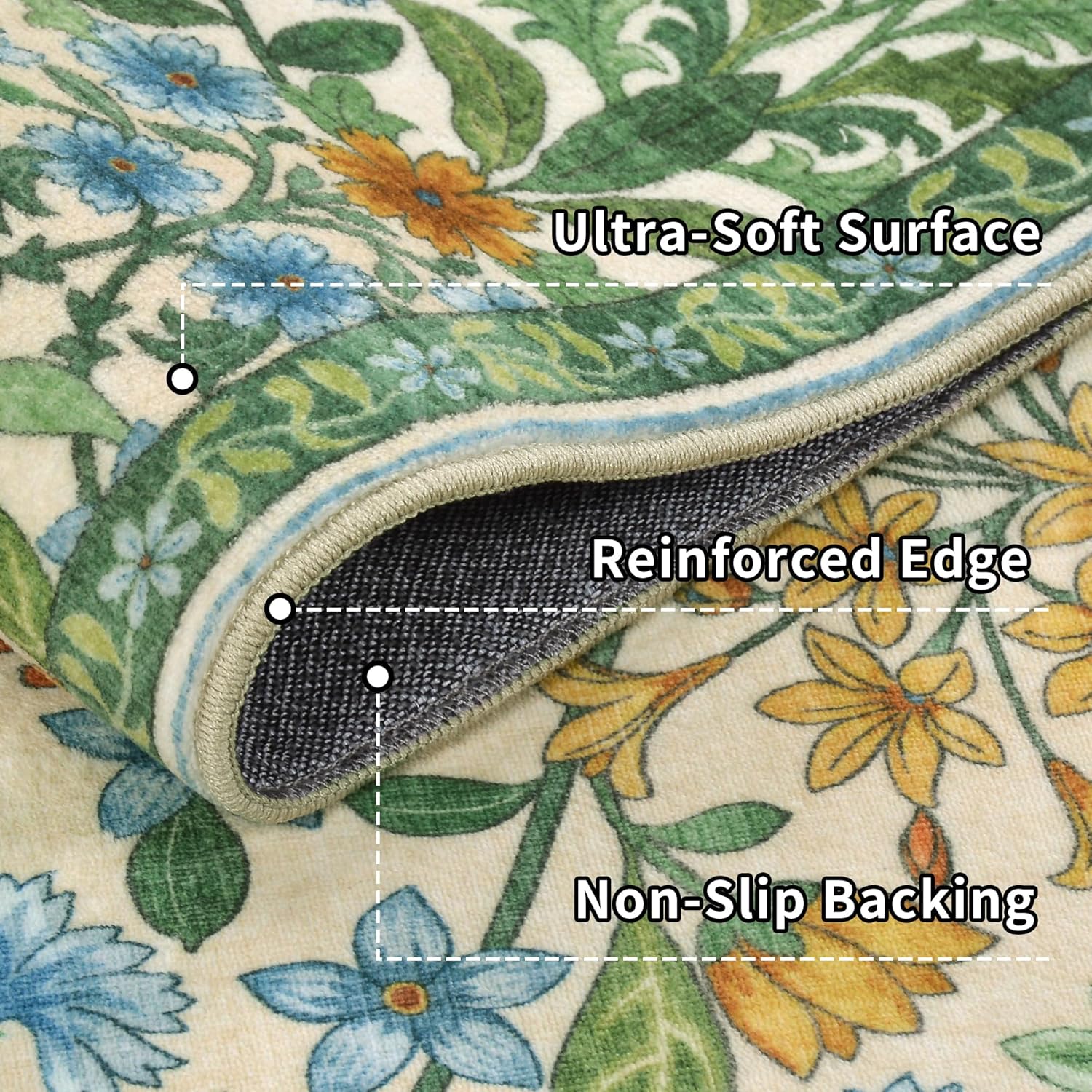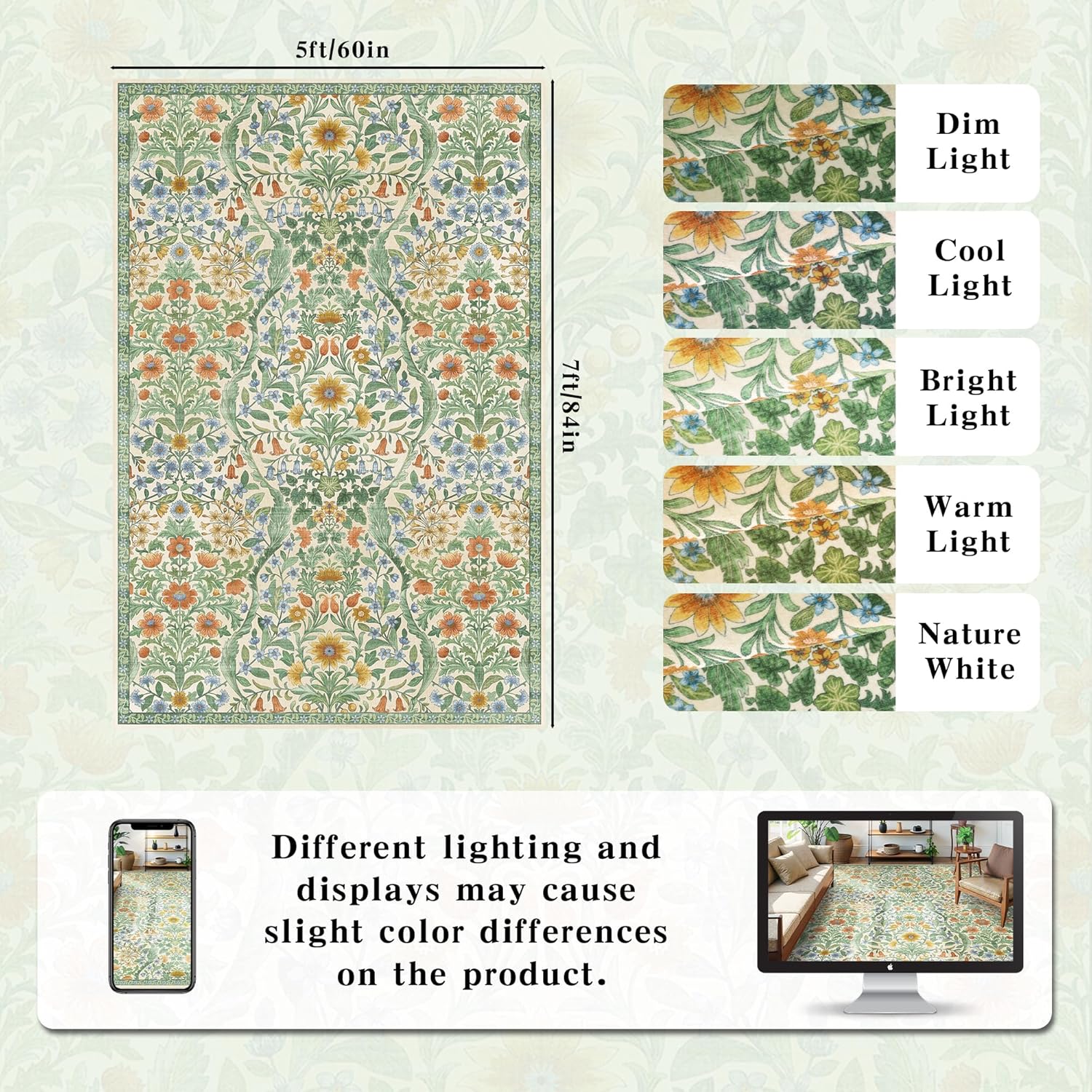 - Botanical Floral Rug: Intricate garden motifs of this 5x7 rug create natural elegance that harmonizes with both classic and modern interiors. It's ideal for living room, bedrooms, dining room, kids' playrooms or home office, injecting vibrancy and freshness into your space.