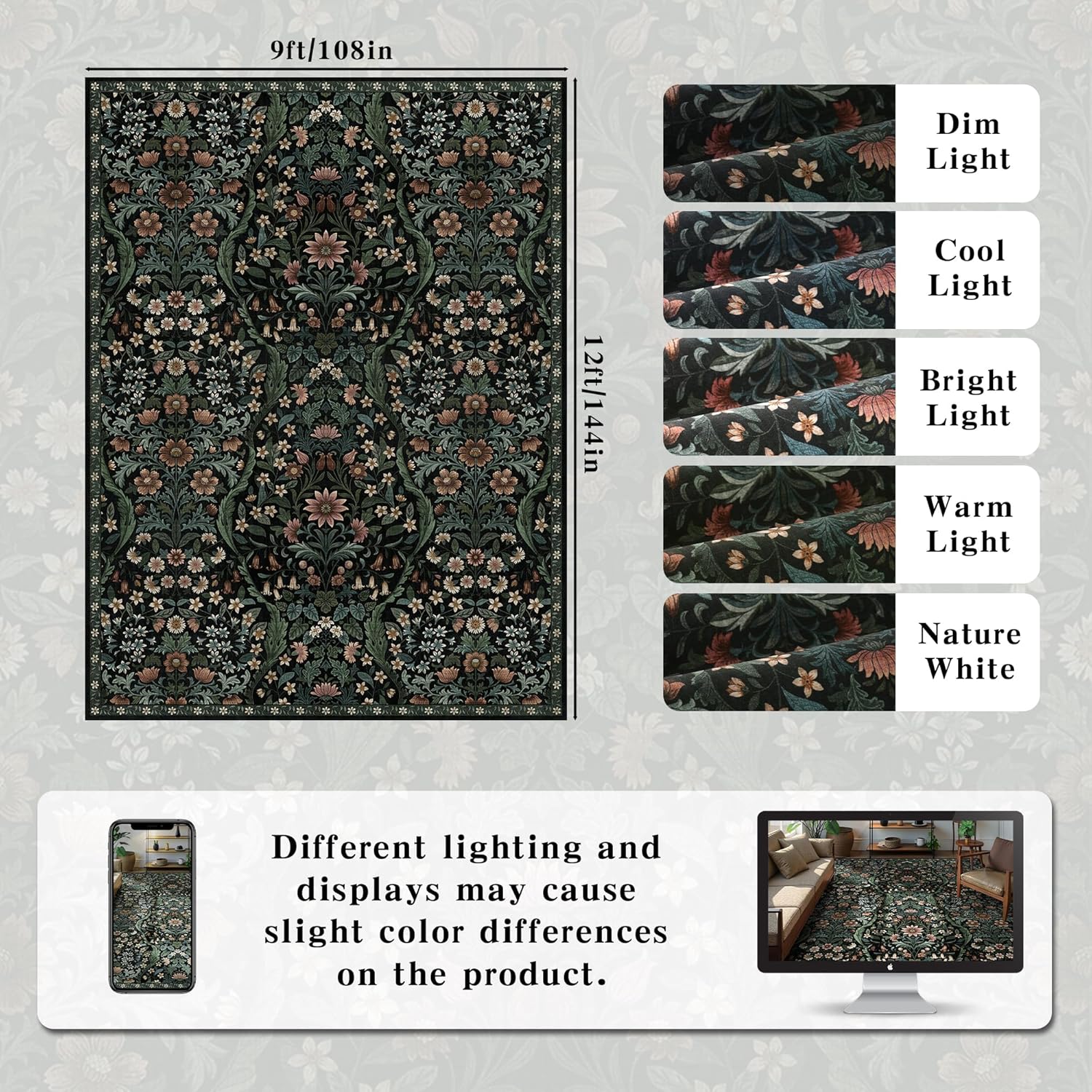 - Botanical Floral Rug: Intricate garden motifs of this 9x12 area rug create natural elegance that harmonizes with both classic and modern interiors. It's ideal for living room, bedrooms, dining room, kids' playrooms or home office, injecting vibrancy and freshness into your space.