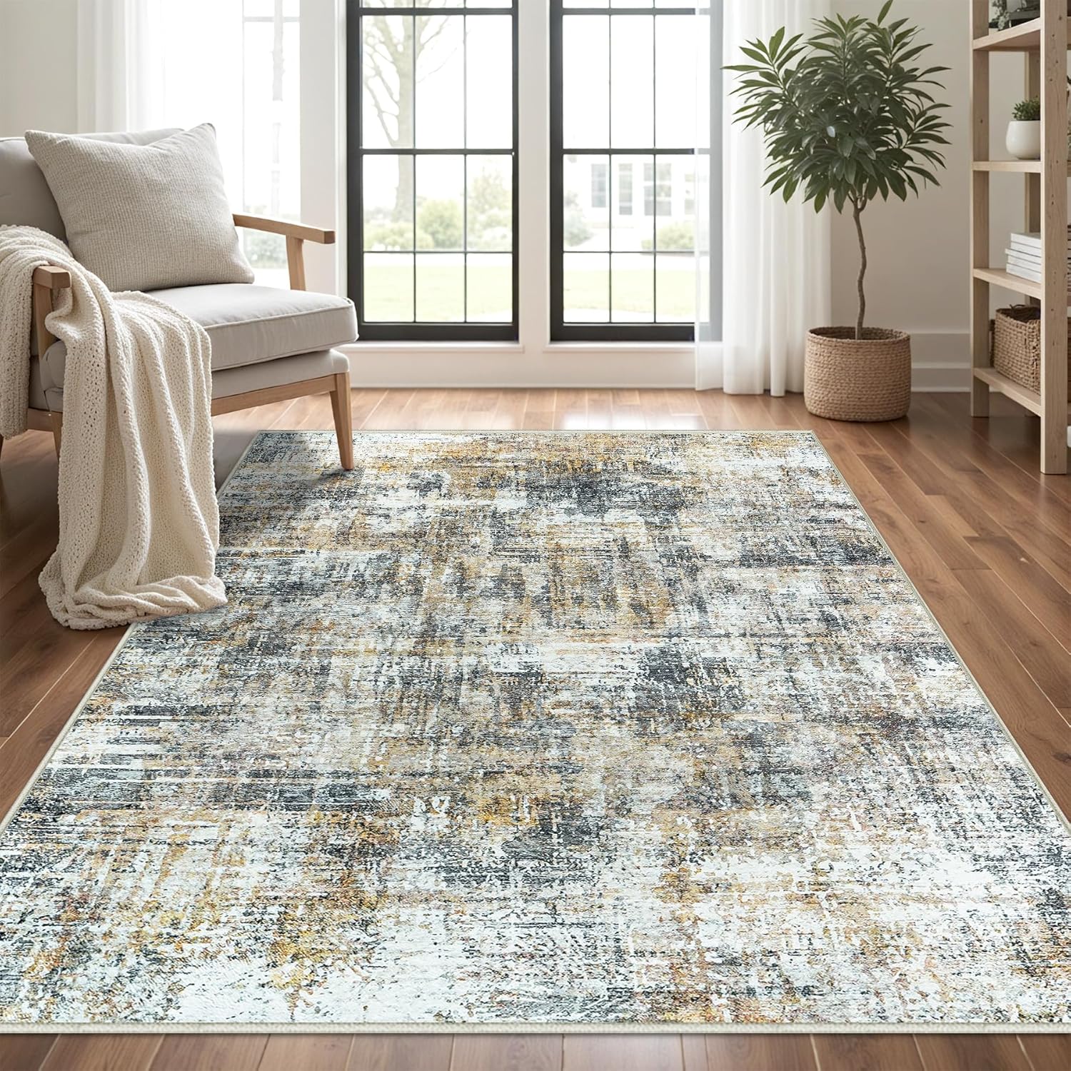 - Versatile 5x7 Area Rug: The edges of large area rug can stay nice & flat and do not roll up on the corners. Washable area rugs surfaces stand up to everyday wear and tear and can be held up wonderfully after a long time of use with no pilling. It will be a good choice for the living room, bedroom, dorm, dining room, hallway, nursery, office, farmhouse or any high-traffic area