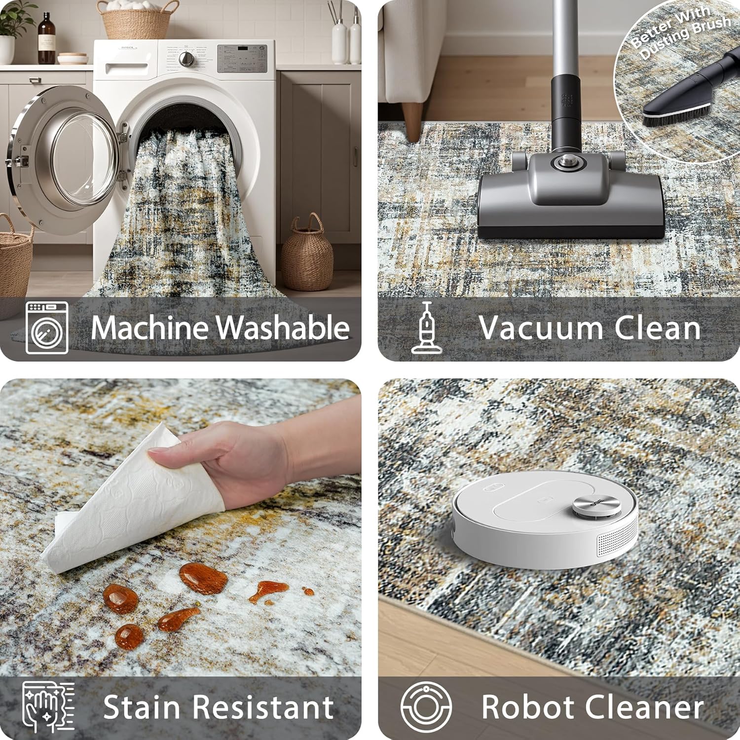 - Stylish Abstract Area Rugs: The washable rug 9x12 combines modern abstract patterns with a vibrant splash of color, making it a standout choice for anyone looking to elevate the aesthetic appeal. And it is an ideal design that perfectly complements various home decor. Whether modern, contemporary, vintage, or even traditional style