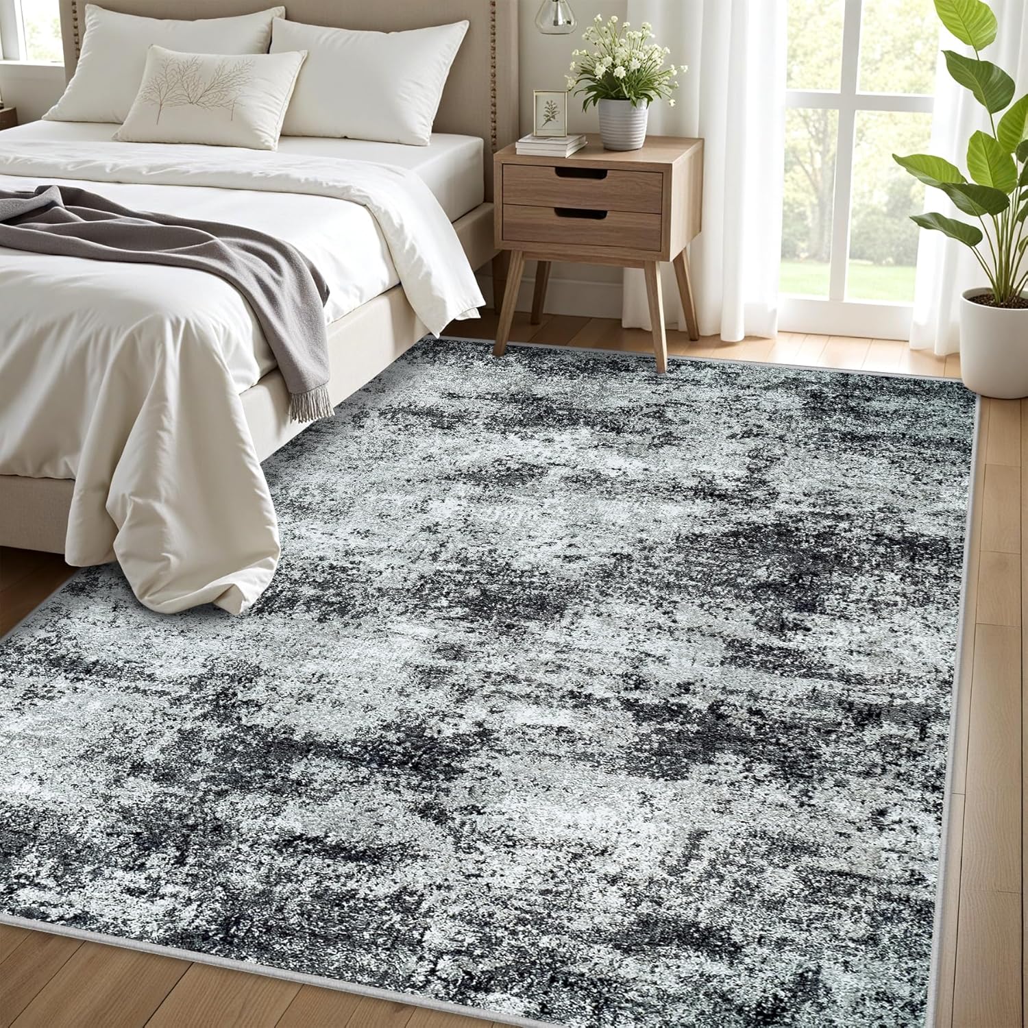 Area Rug Living Room Rugs: 5x7 Abstract Washable Rugs Ultra Soft Carpets with Non-Slip Backing Stain Resistant Carpet for Dining Room Table Bedroom Nursery Indoor Home Office Dark Black/Gray