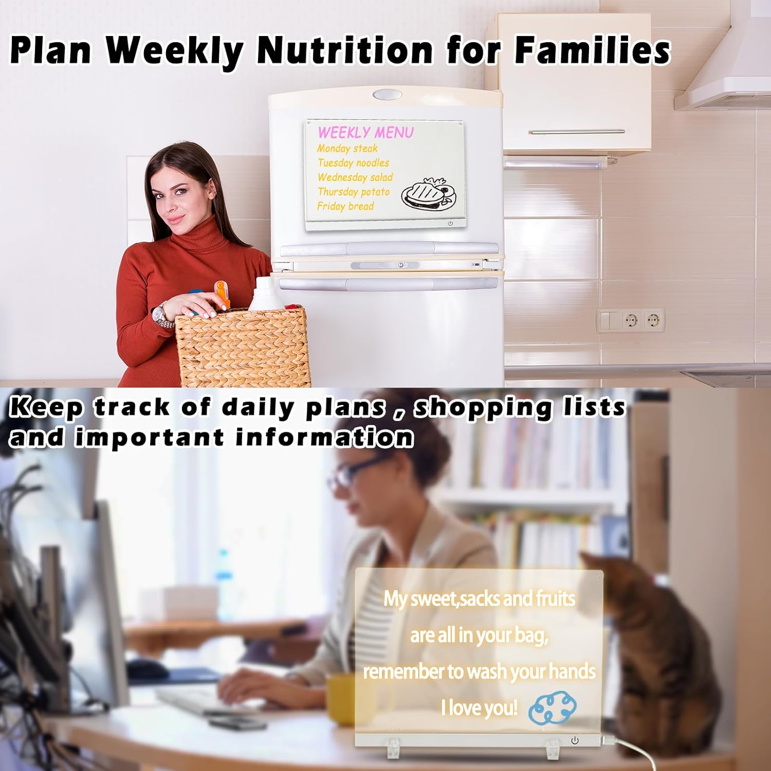 Acrylic Dry Erase Board with LED Light -11.8"x8.5" Clear Glowing Memo,Brightness Level Adjustment,12 Color Markers, Ideal for Office/Home/Kids (Standard Edition+Battery Power Supply Box)