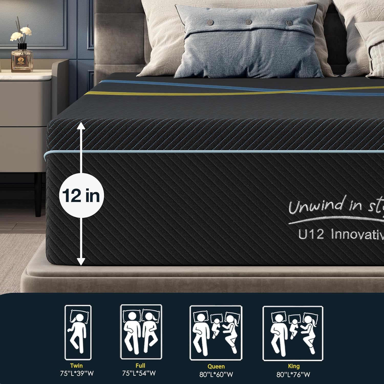 12 inch Queen Mattress Multi-Layer Memory Foam Mattress - Medium Firmness with Bamboo Charcoal & Green Tea Infusion