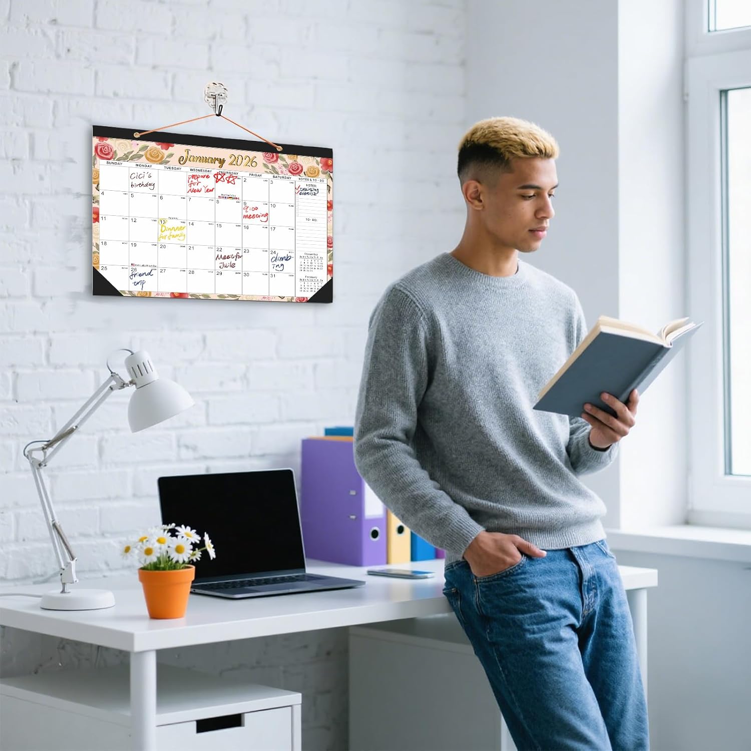 2026-2027 18-Month Desk Calendar with 2 Stickers - 17"x12" Desktop/Wall Monthly Calendar for Homeschool & Office,watercolor