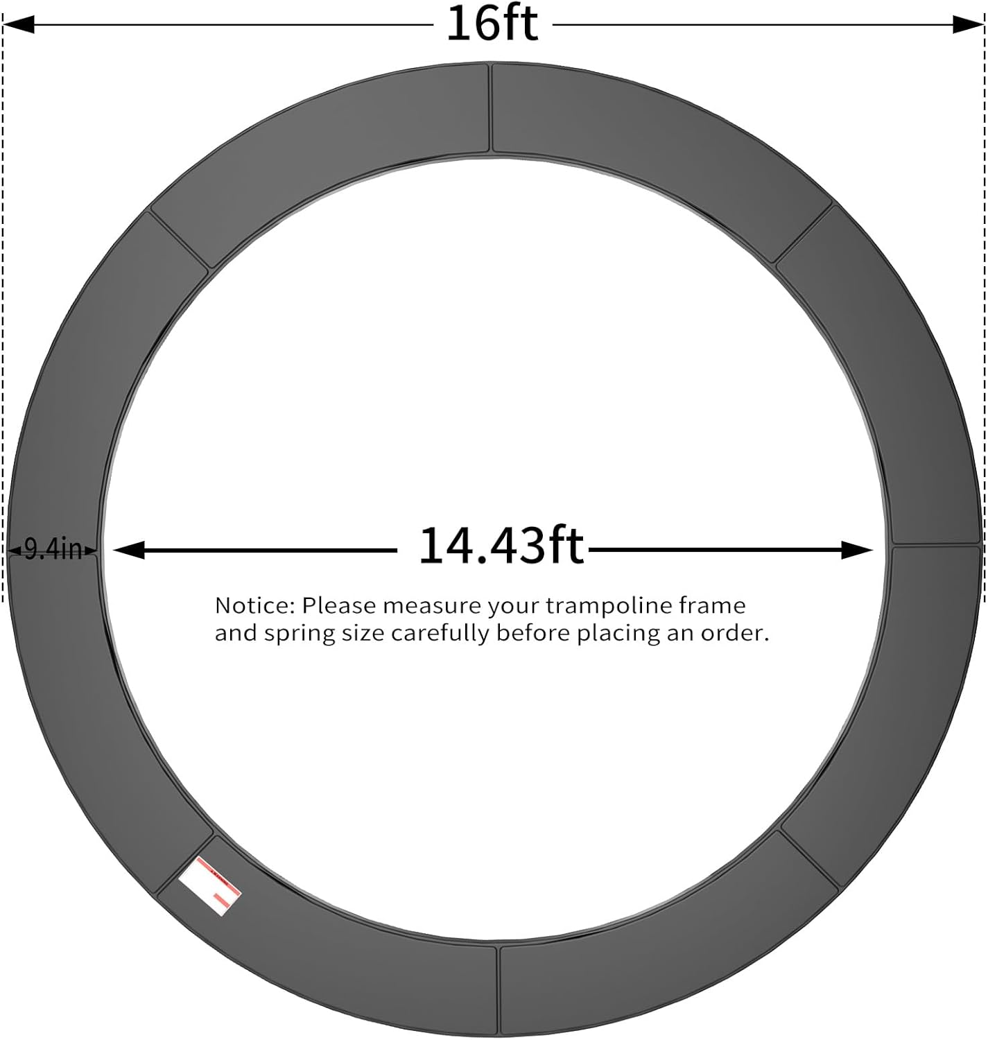 - 【NOTE】Please confirm the size of your trampoline before purchasing the safety pad, this trampoline pad is only suitable for 16FT trampolines with a round frame