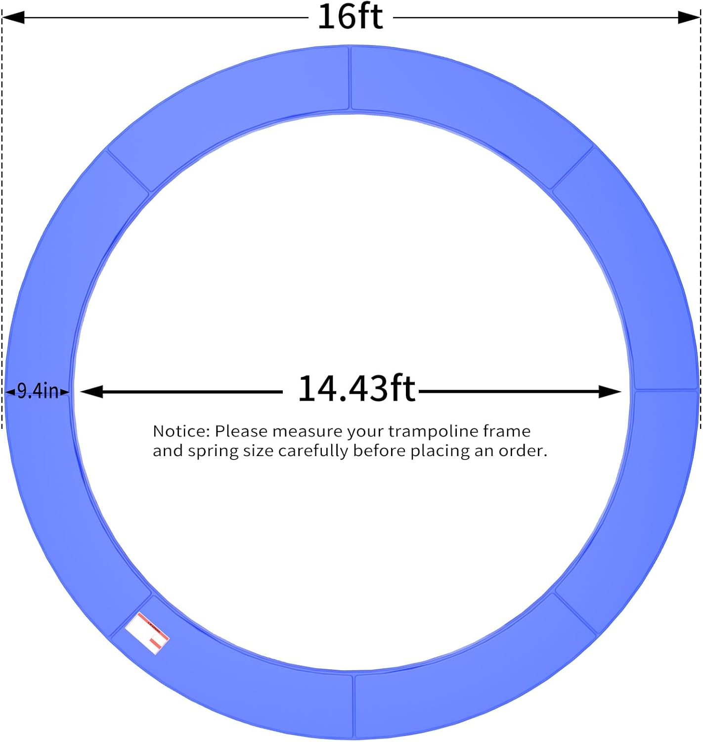 - 【NOTE】Please confirm the size of your trampoline before purchasing the safety pad, this trampoline pad is only suitable for 16FT trampolines with a round frame