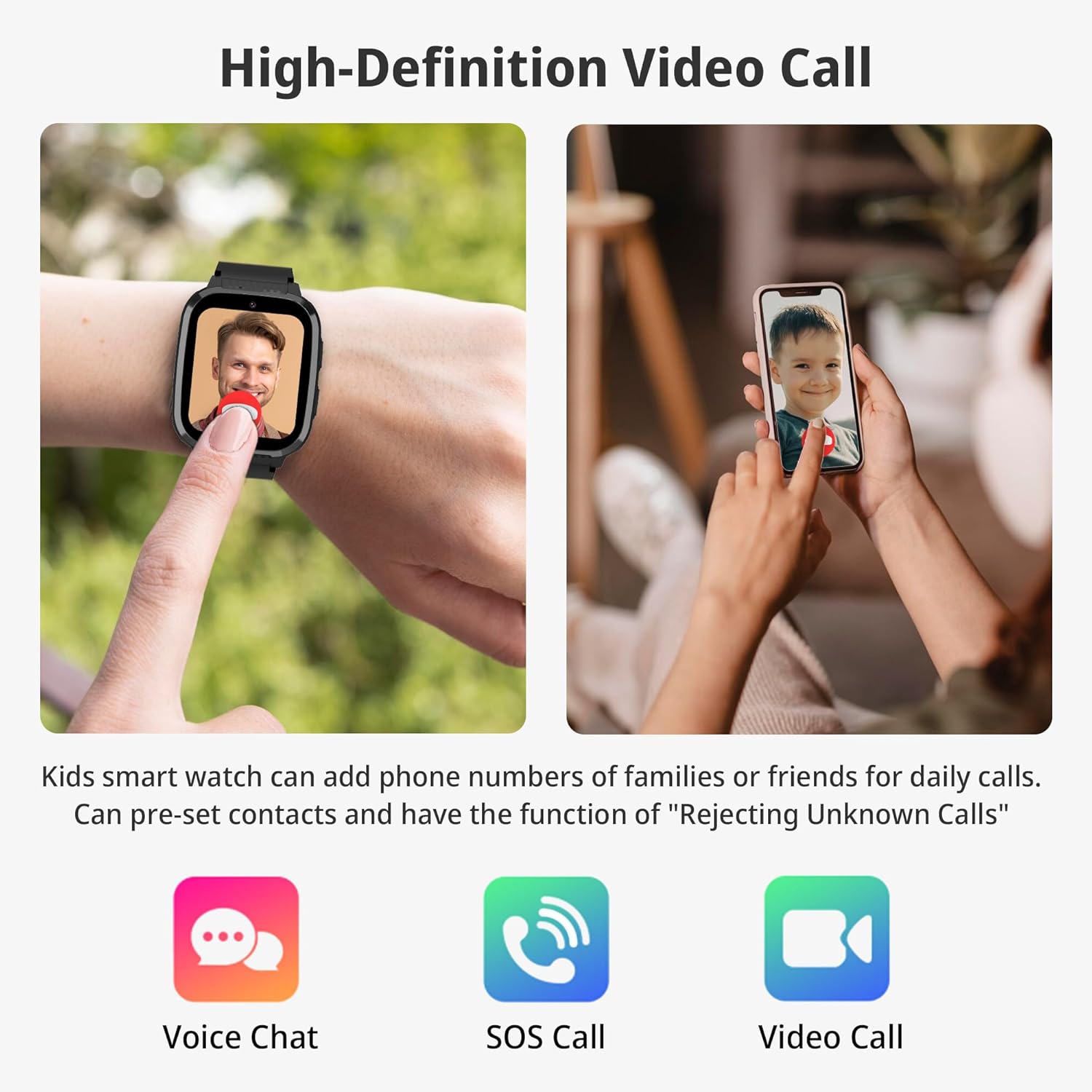 - ăVideo Phone & Voice Chat & Textingă - Kids smart watch boys has these three major functions, allowing parents to communicate with their children at any time, making it easy to understand their children's situation to bring everyone closer together.Children can also make friends and chat with each other using kids watches.